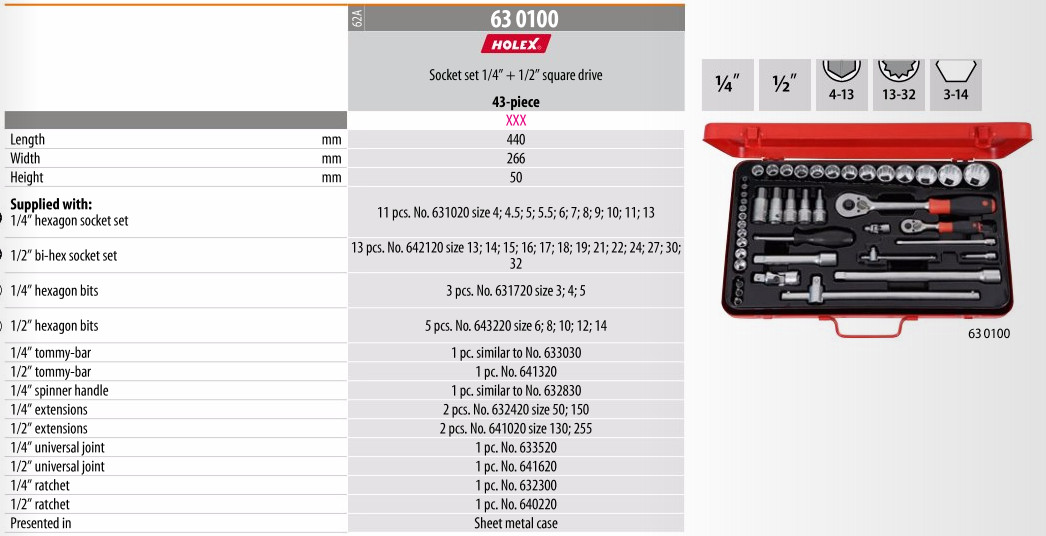 Bộ dụng cụ 43 chi tiết Holex 630100.