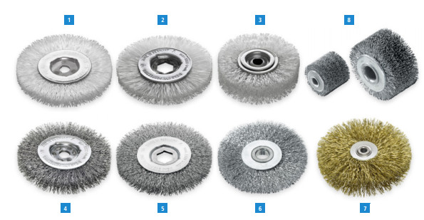 +Chổi mài bavia làm từ sợi lynon chịu nhiệt cao và có phủ các hạt mài mòn, có khả năng mài mòn cao hơn giấy nhám.