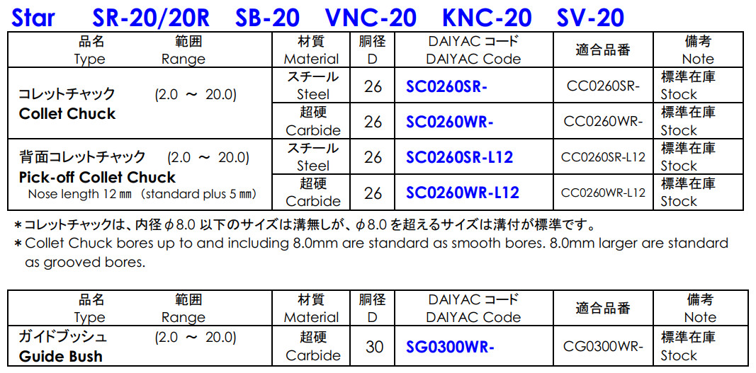 Collet máy tiện cấp phôi tự động Star SR-20,Star 20R, Star SB-20,Star VNC-20,Star KNC-20,Star SV-20