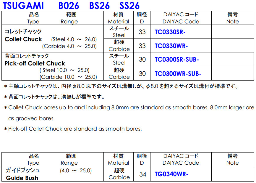 Bộ kẹp phôi máy TSUGAMI B026,TSUGAMI BS26,TSUGAMI SS26.Collet máy tiện cấp phôi tự động TSUGAMI B026,TSUGAMI BS26,TSUGAMI SS26