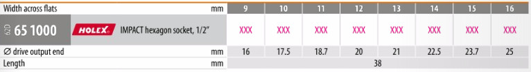 IMPACT hexagon socket, 1/2 inch Holex 651000 9,10,11,12,13,14,15,16,17,18,19,21,24,27,30,32