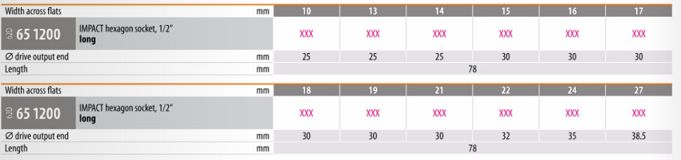 IMPACT hexagon socket, 1/2 inch long Holex 651200 10,13,14,15,16,17,18,19,21,22,24,,27