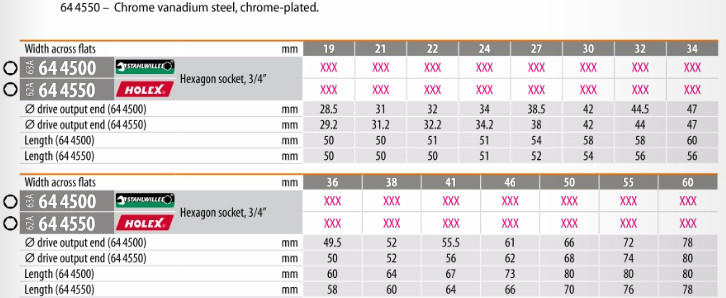 Đầu lục 3/4 inch Hoffmann 644550 19,21,22,24,27,30,32,34,36,38,41,46,50,55,60