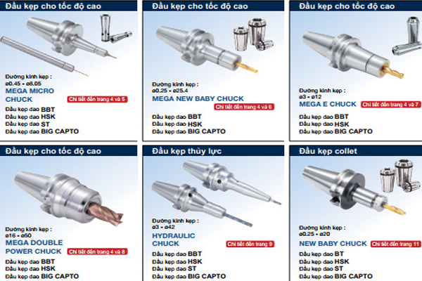 Tổng hợp hệ thống đầu kẹp dao .