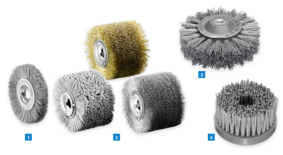 +Chổi mài bavia làm từ sợi lynon chịu nhiệt cao và có phủ các hạt mài mòn, có khả năng mài mòn cao hơn giấy nhám.