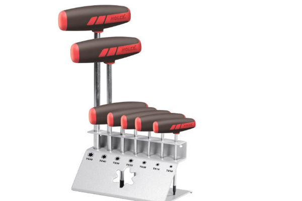 Torx® screwdriver set with T-handle, 7 pieces, in a sheet metal stand 7 Hoffmann 625241 7