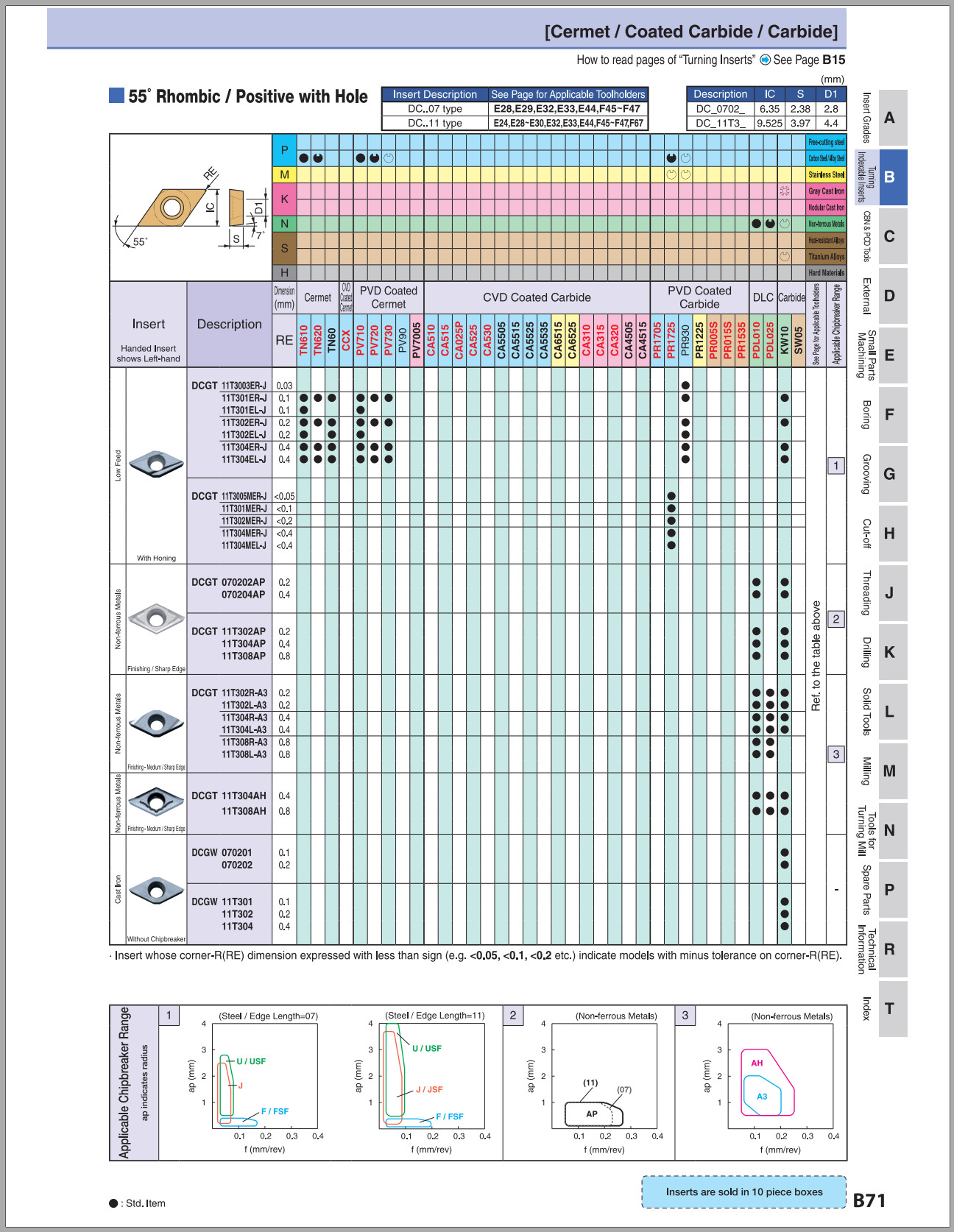 Lưỡi dao tiện DCGT11T304AH-KW10,DCGT11T308AH-PLD010,