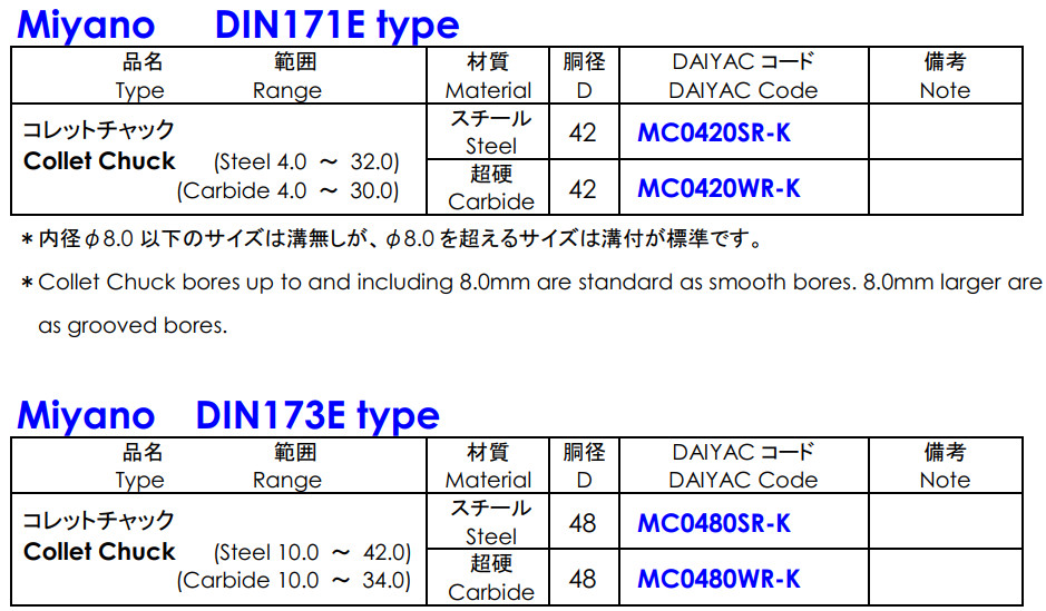 Bộ kẹp phôi máy Miyano DIN171E, - Collet máy tiện cấp phôi tự động Miyano