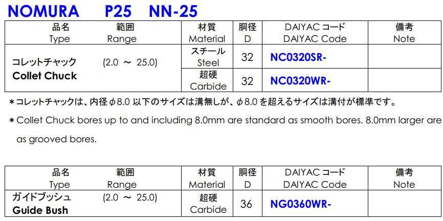 Bộ Collet & Guide bush cho máy cấp phôi tự động NOMURA P20,NOMURA NN-25,