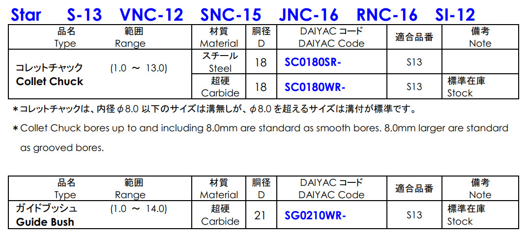 Bộ Collet & Guide bush cho máy cấp phôi tự động Star S-13.