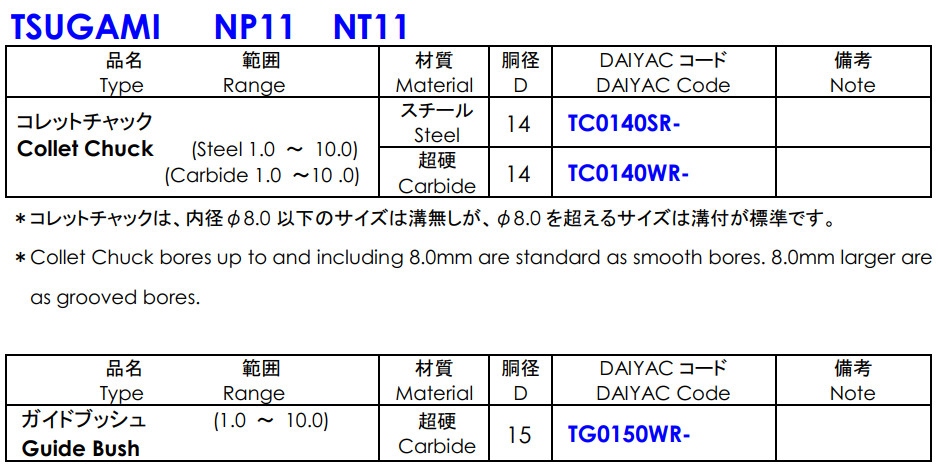 Bộ Collet & Guide bush cho máy cấp phôi tự động TSUGAMI NP11 NT11.