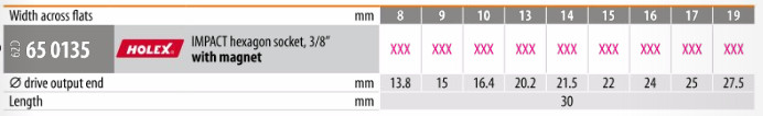 Đầu lục có nam châm , 3/8 inch Hoffmann 650135 8, 9,10,13,14,15,16,17,19