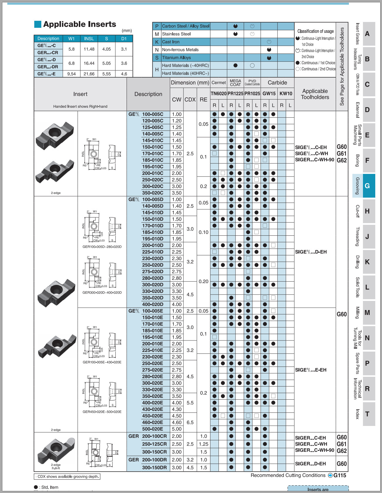 Ứng dụng mảnh dao : GER100-005C~GER350-020C,.....